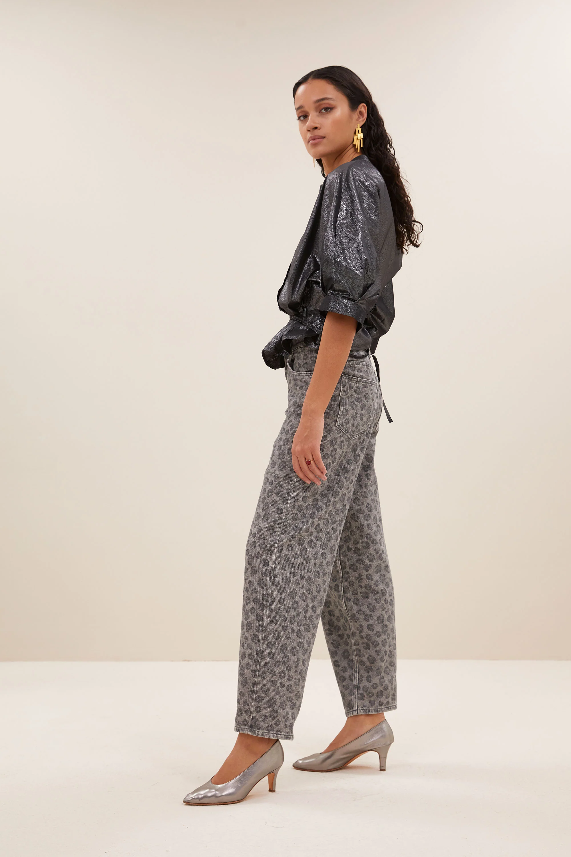 De christi silver blouse, een feestelijke blouse met een losse pasvorm die comfort en stijl combineert. De korte fit en voluminieuze mouwen geven een speelse touch, terwijl de knoopsluiting een subtiel detail toevoegt. De blouse heeft naast een knoopsluiting ook een strikceintuur. Perfect voor een sprankelende look tijdens speciale gelegenheden.
